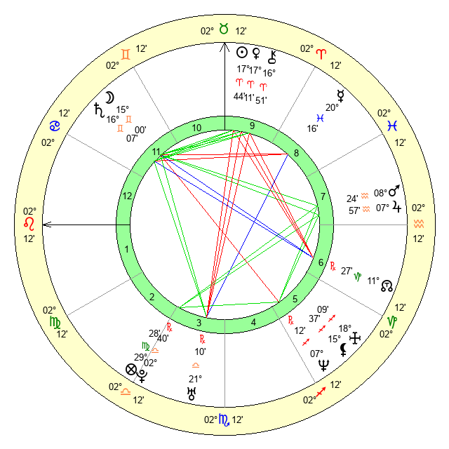 | Venus | 17 Aries 12 | 25 Pisces 13 | 21 Gemini 18 |