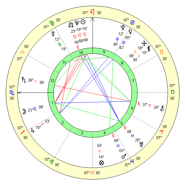 | Moon | 23 Scorpio 7 | 8 Aquarius 41 | 2 Leo 33 |