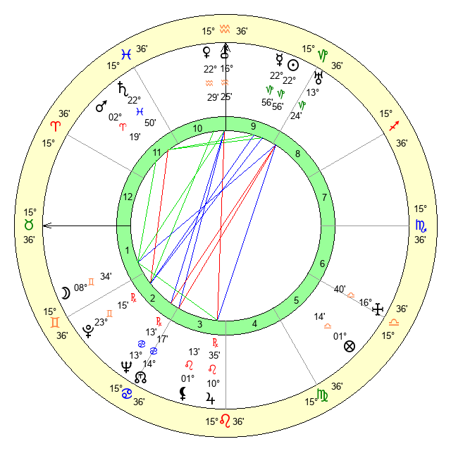 | Mars | 2 Aries 18 | 26 Cancer 51 | 22 Gemini 6 |