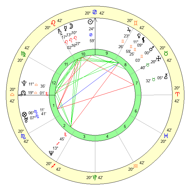 | Sun | 24 Cancer 59 | 25 Cancer 22 | 11 Virgo 4 |