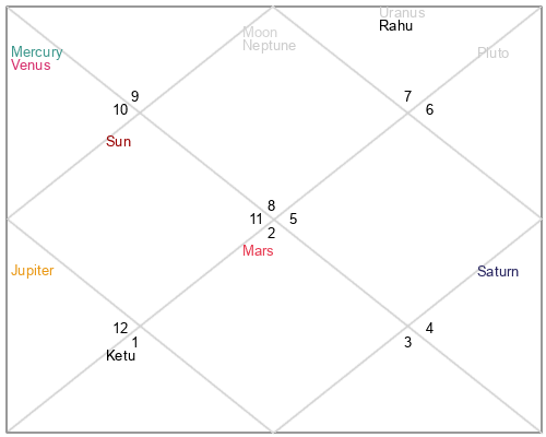 | Ketu | 16 Taurus 31 | 28 Virgo 45 | 13 Taurus 55 |