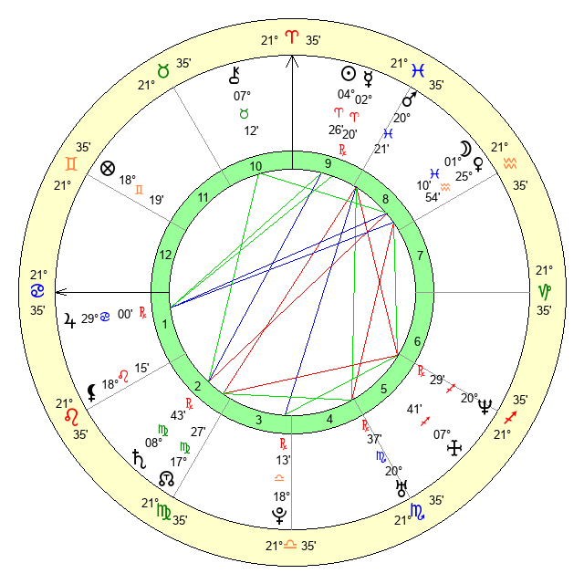 | Moon | 1 Pisces 20 | 14 Aquarius 24 | 2 Scorpio 38 |