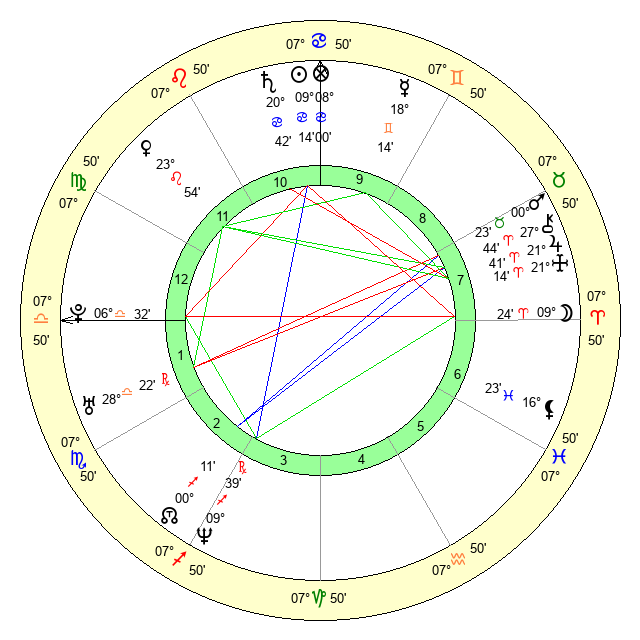 | Sun | 9 Cancer 14 | 10 Cancer 6 | 27 Leo 3 |