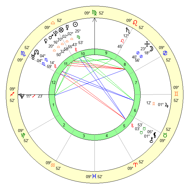 | Neptune | 11 Sagittarius 23 | 0 Aries 52 | 12 Sagittarius 37 |