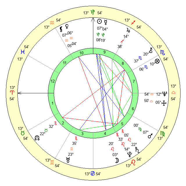 | Mars | 7 Virgo 0 | 2 Leo 39 | 19 Leo 19 |