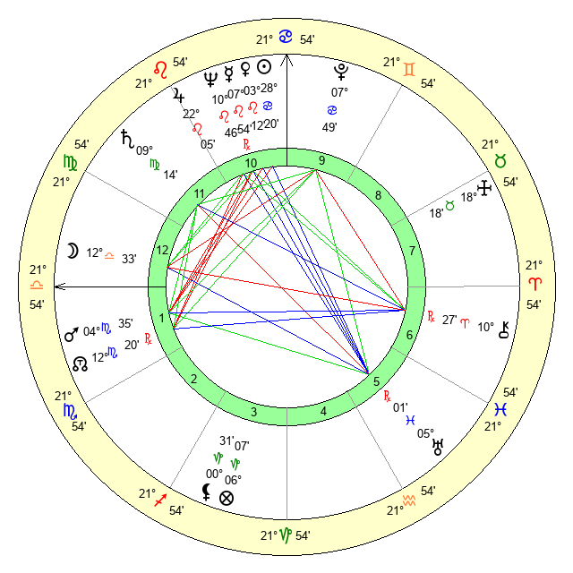 | Moon | 12 Libra 44 | 14 Gemini 41 | 12 Leo 26 |