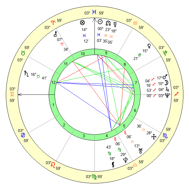 | Sun | 0 Pisces 3 | 0 Pisces 58 | 23 Aries 46 |