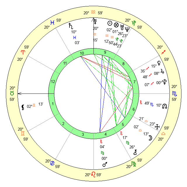 | Moon | 13 Libra 1 | 12 Scorpio 2 | 21 Scorpio 38 |