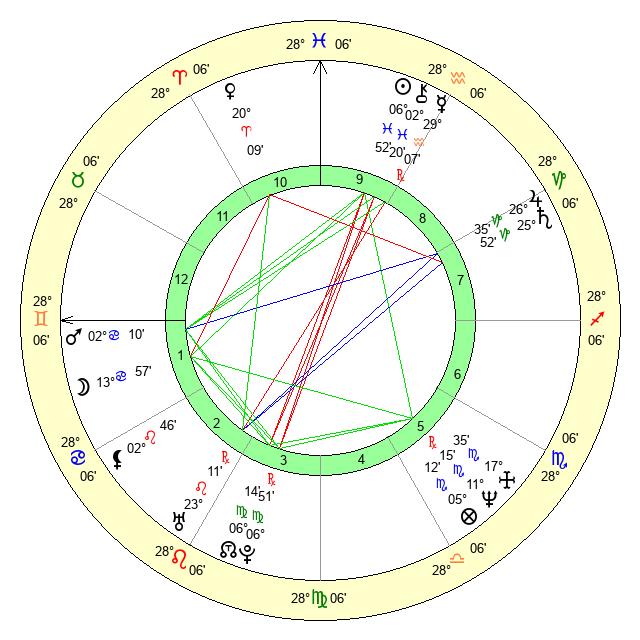 | Saturn | 26 Capricorn 10 | 20 Pisces 13 | 0 Aquarius 5 |