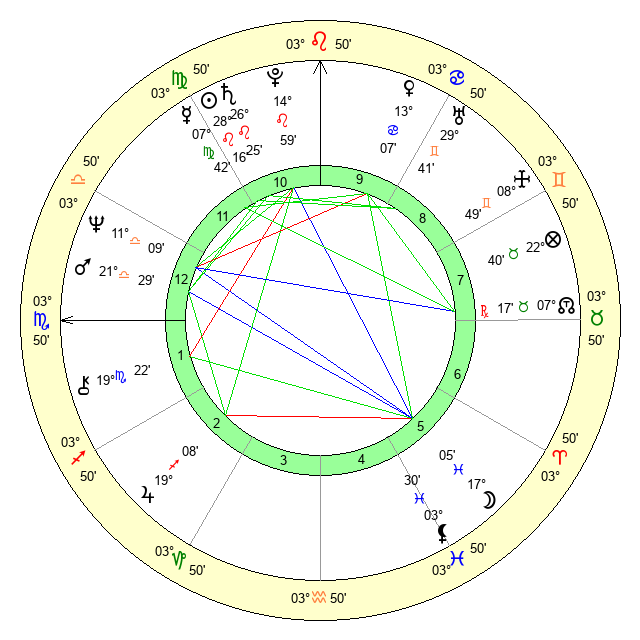 | Saturn | 26 Leo 52 | 0 Aries 35 | 5 Virgo 12 |