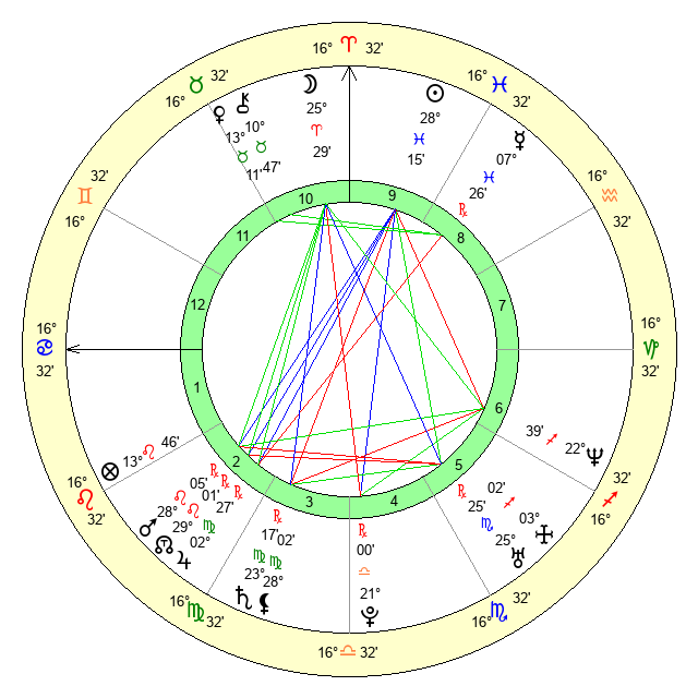 | Moon | 25 Aries 29 | 16 Scorpio 22 | 9 Sagittarius 47 |