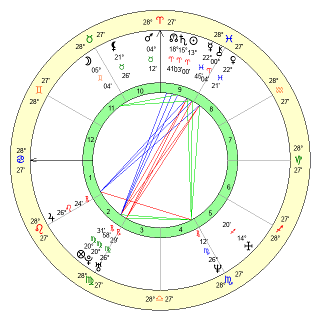| Moon | 4 Gemini 58 | 12 Gemini 27 | 4 Cancer 42 |