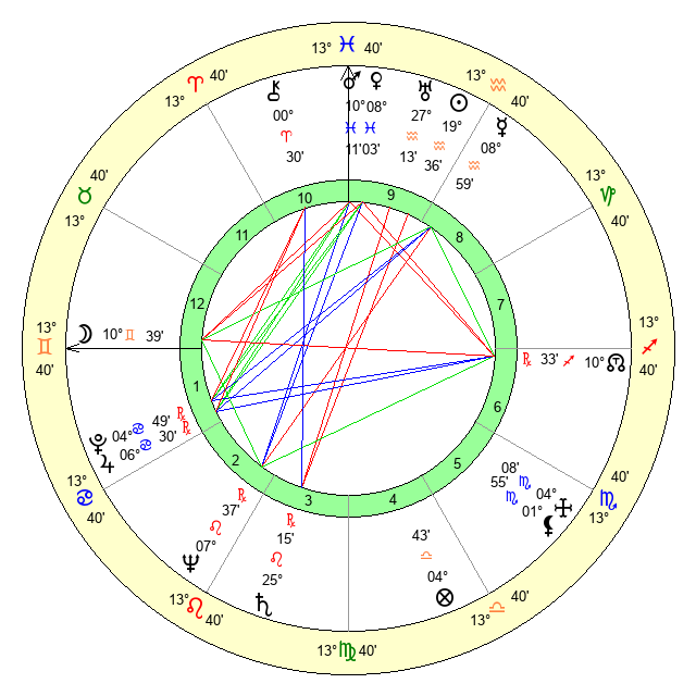 | Moon | 10 Gemini 45 | 12 Cancer 52 | 20 Aries 4 |