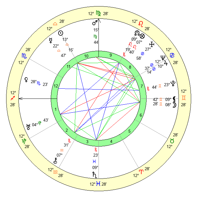 | Mars | 15 Virgo 45 | 10 Scorpio 17 | 28 Scorpio 53 |
