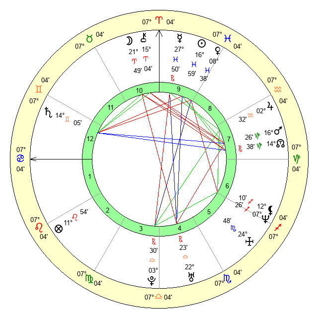 | Moon | 21 Aries 49 | 0 Cancer 21 | 12 Pisces 50 |