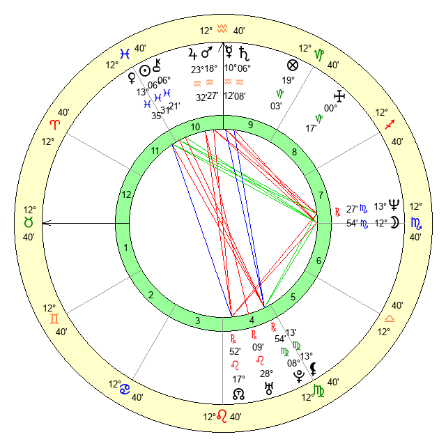 | Moon | 12 Scorpio 48 | 5 Aquarius 17 | 6 Pisces 15 |