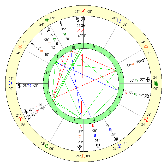 | Saturn | 17 Aquarius 37 | 25 Pisces 24 | 0 Pisces 48 |