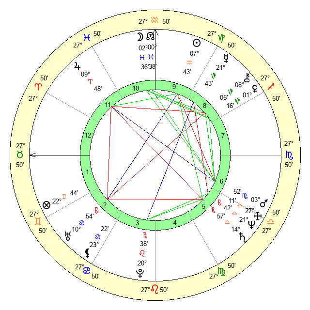 | Moon | 2 Pisces 32 | 28 Capricorn 29 | 24 Libra 57 |