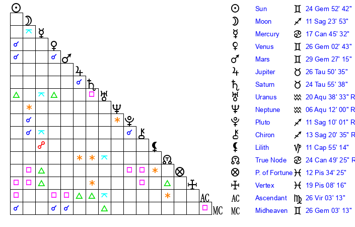 Sun | 24 Gemini 53 | 24 Gemini 50 | 18 Cancer 44 |