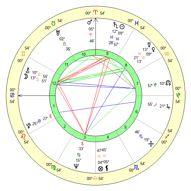 | Mars | 5 Aries 46 | 17 Cancer 13 | 10 Gemini 43 |