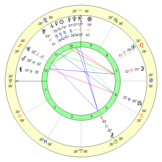 | Saturn | 27 Libra 54 | 25 Pisces 25 | 2 Scorpio 23 |