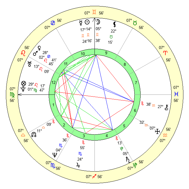 | Moon | 5 Gemini 38 | 13 Libra 34 | 4 Scorpio 4 |