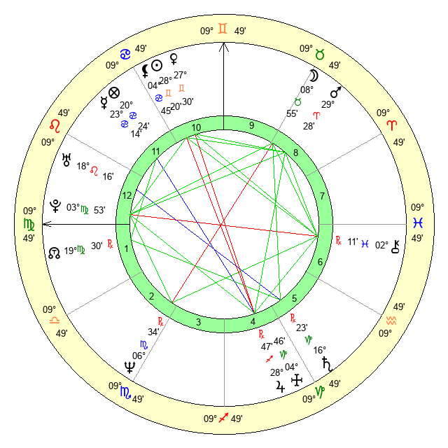 | Sun | 28 Gemini 20 | 28 Gemini 37 | 0 Virgo 30 |