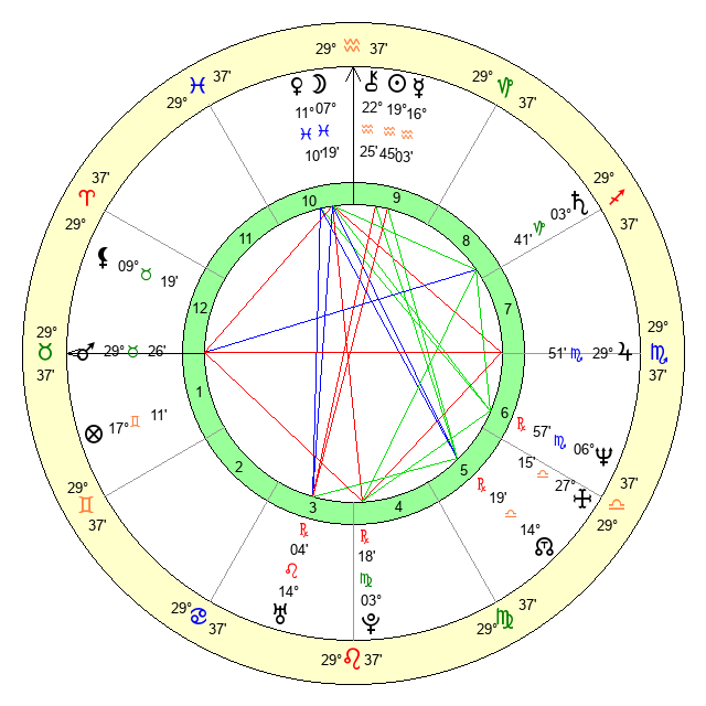 | Moon | 7 Pisces 15 | 10 Cancer 56 | 24 Cancer 53 |