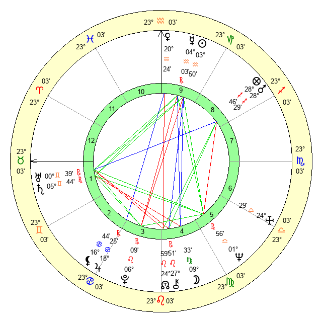 | Moon | 9 Virgo 35 | 6 Sagittarius 16 | 10 Virgo 40 |