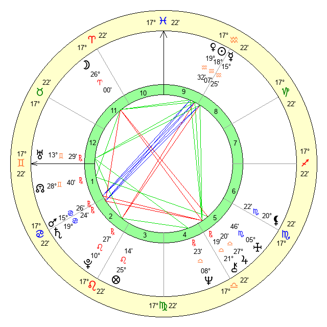 Moon | 26 Aries 0 | 16 Gemini 56 | 11 Pisces 13 |