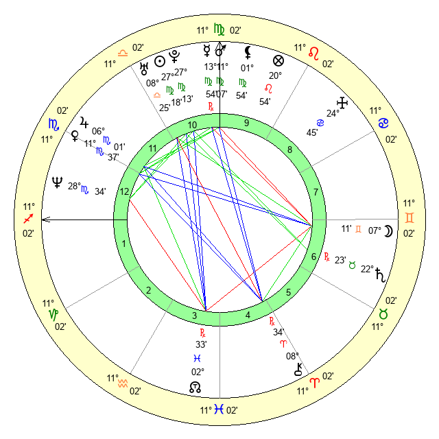 | Moon | 7 Gemini 17 | 14 Virgo 58 | 9 Gemini 49 |
