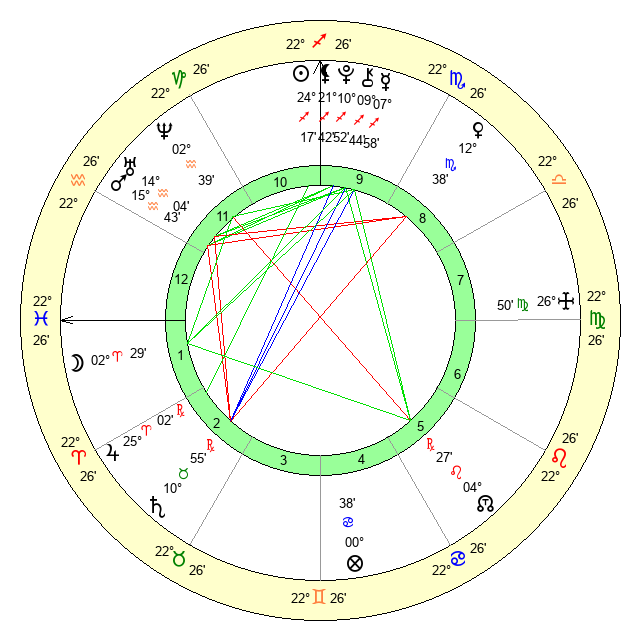 | Moon | 2 Aries 30 | 12 Cancer 38 | 3 Pisces 40 |