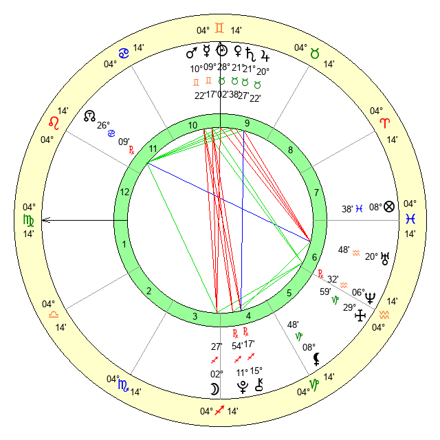 Mars | 10 Gemini 23 | 14 Leo 9 | 27 Gemini 27 |