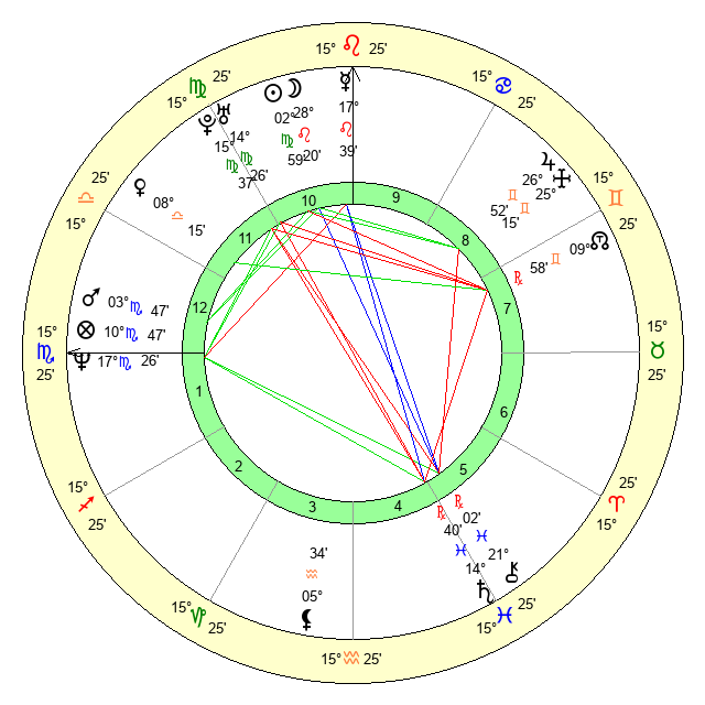 Moon | 28 Leo 21 | 10 Libra 41 | 12 Scorpio 43 |