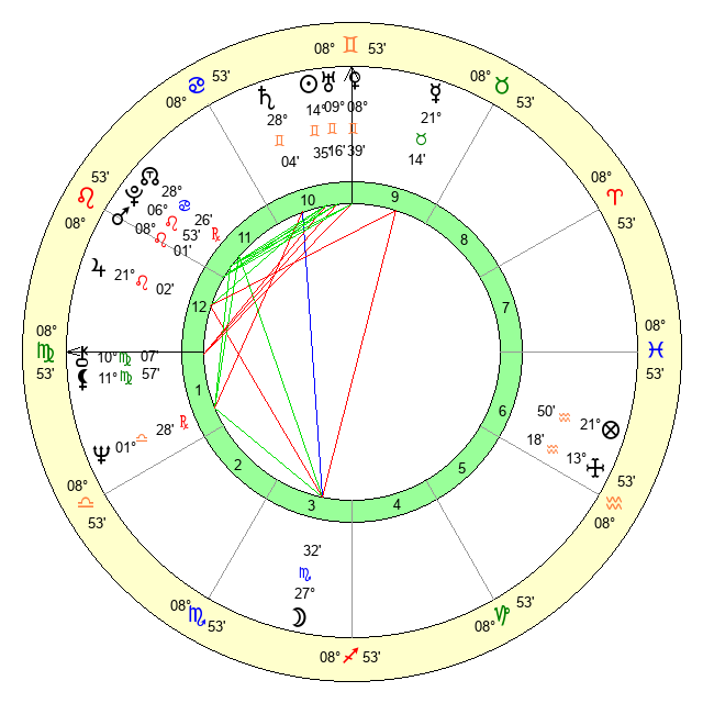 | Venus | 8 Gemini 40 | 29 Aries 14 | 18 Virgo 20 |