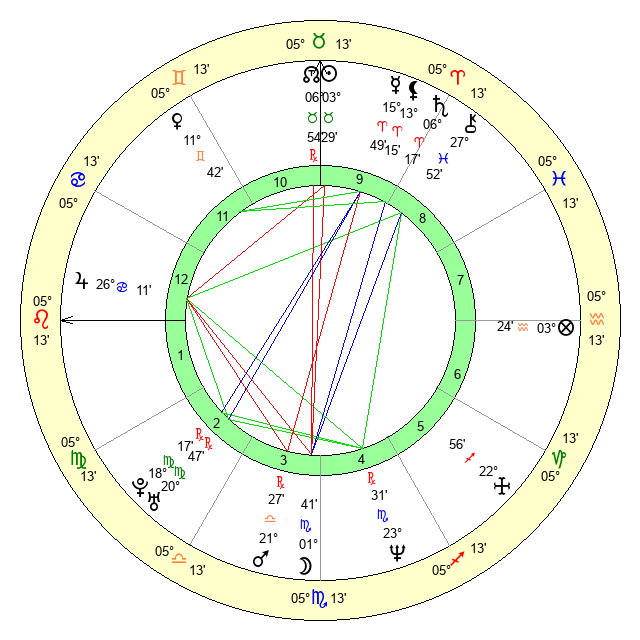 | Mars | 21 Libra 28 | 2 Leo 38 | 18 Libra 56 |