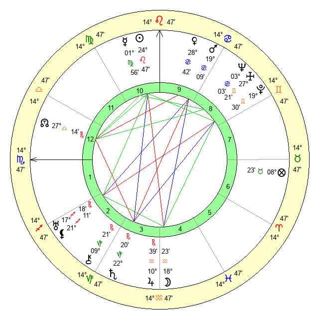 | Sun | 24 Leo 47 | 26 Leo 0 | 26 Sagittarius 53 |