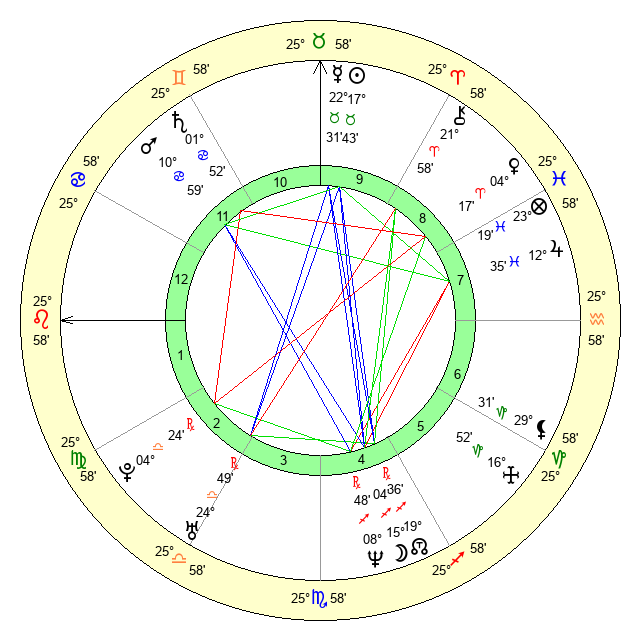 | Jupiter | 12 Pisces 27 | 22 Gemini 57 | 17 Pisces 34 |