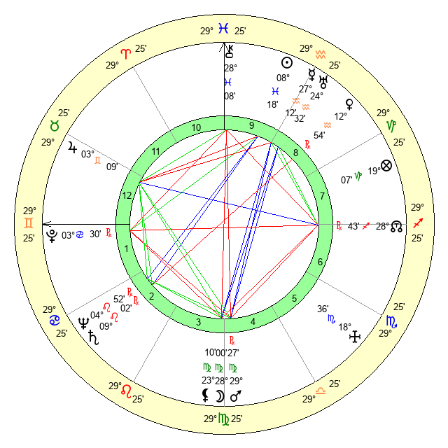 | Moon | 27 Virgo 58 | 4 Pisces 55 | 2 Virgo 31 |