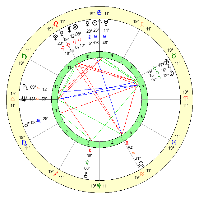 | Sun | 23 Cancer 7 | 23 Cancer 27 | 3 Libra 32 |