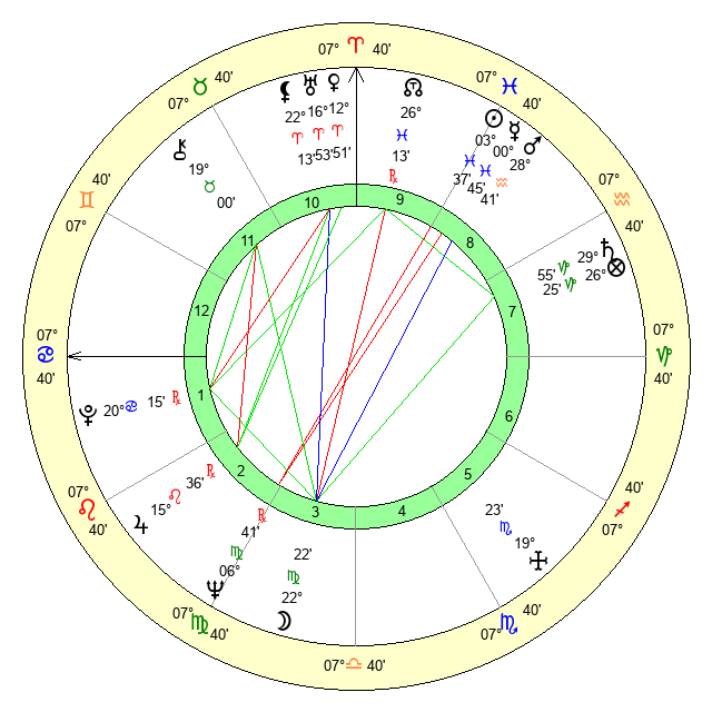 | Moon | 22 Virgo 16 | 6 Capricorn 11 | 26 Aquarius 25 |