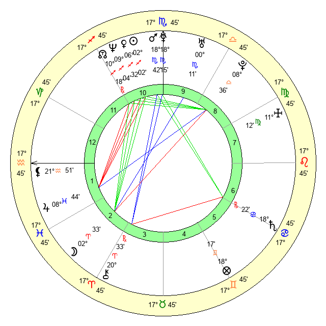 | Moon | 2 Aries 33 | 21 Virgo 2 | 6 Aquarius 55 |