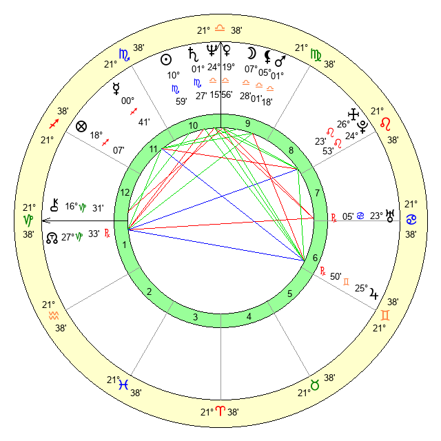 | Saturn | 1 Scorpio 55 | 25 Pisces 34 | 8 Scorpio 52 |