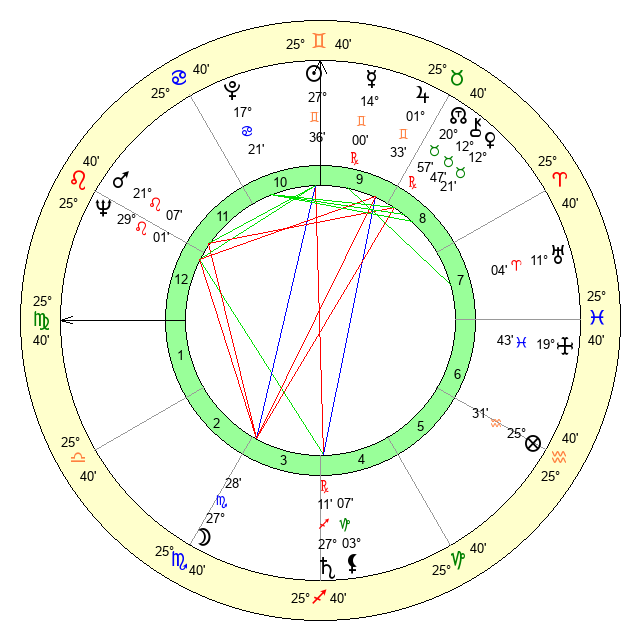 | Moon | 24 Virgo 32 | 29 Capricorn 30 | 15 Pisces 50 |