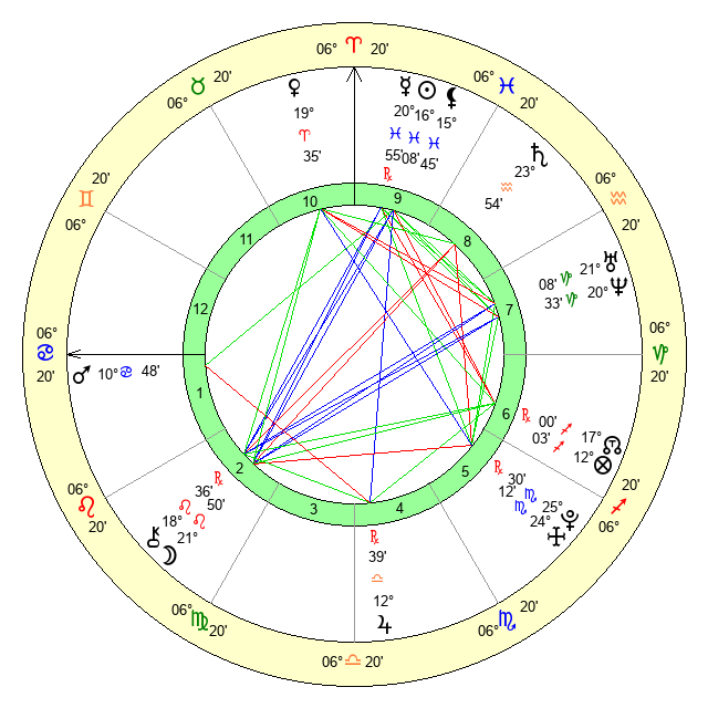 | Moon | 22 Leo 0 | 16 Gemini 40 | 0 Scorpio 54 |