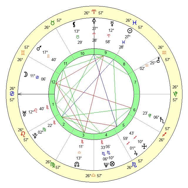 | Moon | 10 Cancer 57 | 17 Scorpio 50 | 20 Sagittarius 24 |