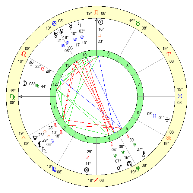 | Moon | 8 Virgo 51 | 7 Scorpio 9 | 7 Aries 20 |