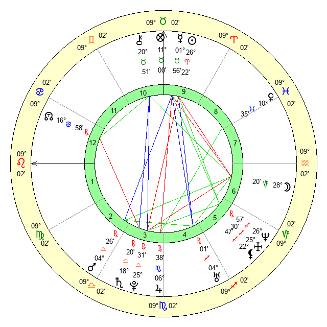 | Jupiter | 6 Scorpio 26 | 18 Gemini 38 | 1 Scorpio 29 |