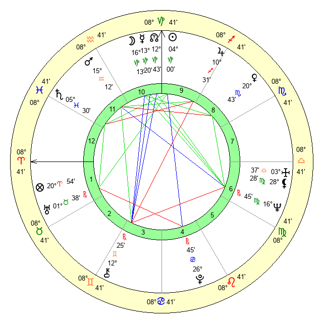 | Neptune | 16 Virgo 45 | 27 Pisces 13 | 14 Virgo 53 |