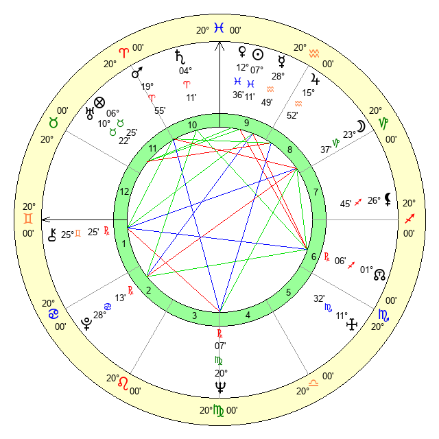| Moon | 23 Capricorn 30 | 16 Aquarius 58 | 25 Pisces 6 |